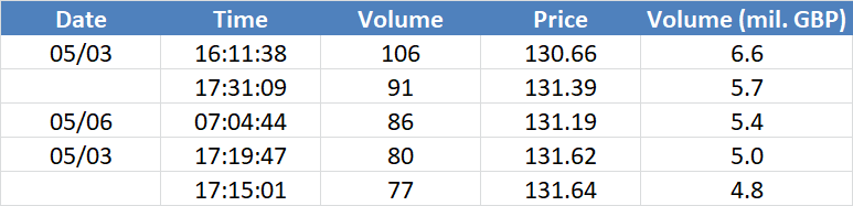 A legnagyobb volumenű tranzakciók a GBPUSD devizapáron: