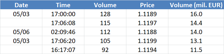 A legnagyobb volumenű tranzakciók az EURUSD devizapáron:
