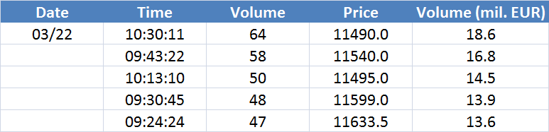A legnagyobb volumenű tranzakciók a DAX részvényindexen: