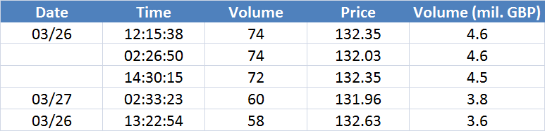 A legnagyobb volumenű tranzakciók a GBPUSD devizapáron: