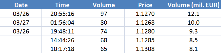 A legnagyobb volumenű tranzakciók az EURUSD devizapáron: