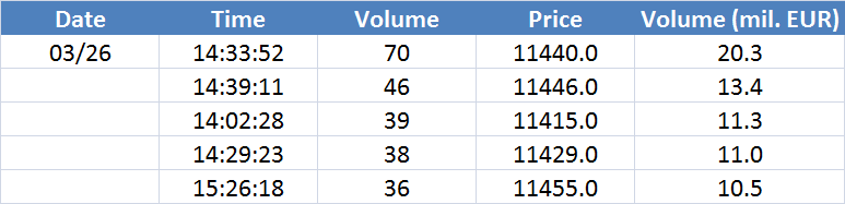 A legnagyobb volumenű tranzakciók a DAX részvényindexen: