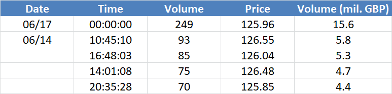 A legnagyobb volumenű tranzakciók a GBPUSD devizapáron: