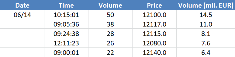 A legnagyobb volumenű tranzakciók a DAX részvényindexen: