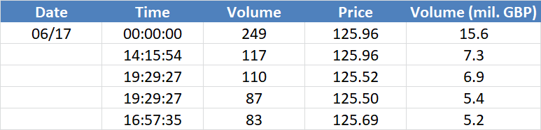 A legnagyobb volumenű tranzakciók a GBPUSD devizapáron: