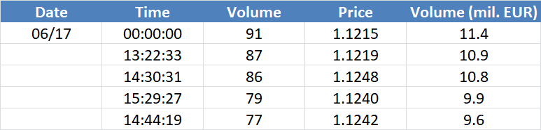 A legnagyobb volumenű tranzakciók az EURUSD devizapáron: