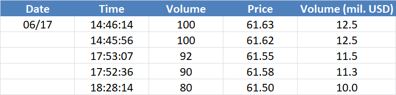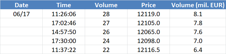 A legnagyobb volumenű tranzakciók az OIL (Brent) instrumentumon: