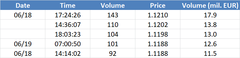 - legtöbb tranzakció az 1.1195 árszinten történt