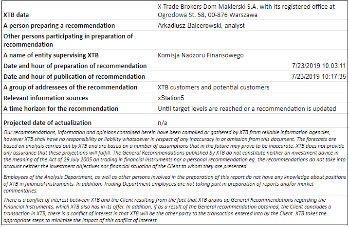 Ezen tartalmat az XTB S.A. készítette, amelynek székhelye Varsóban található a következő címen, Prosta 67, 00-838 Varsó, Lengyelország (KRS szám: 0000217580), és a lengyel pénzügyi hatóság (KNF) felügyeli (sz. DDM-M-4021-57-1/2005). Ezen tartalom a 2014/65/EU irányelvének, ami az Európai Parlament és a Tanács 2014. május 15-i határozata a pénzügyi eszközök piacairól , 24. cikkének (3) bekezdése , valamint a 2002/92 / EK irányelv és a 2011/61 / EU irányelv (MiFID II) szerint marketingkommunikációnak minősül, továbbá nem minősül befektetési tanácsadásnak vagy befektetési kutatásnak. A marketingkommunikáció nem befektetési ajánlás vagy információ, amely befektetési stratégiát javasol a következő rendeleteknek megfelelően, Az Európai Parlament és a Tanács 596/2014 / EU rendelete (2014. április 16.) a piaci visszaélésekről (a piaci visszaélésekről szóló rendelet), valamint a 2003/6 / EK európai parlamenti és tanácsi irányelv és a 2003/124 / EK bizottsági irányelvek hatályon kívül helyezéséről / EK, 2003/125 / EK és 2004/72 / EK, valamint az (EU) 2016/958 bizottsági felhatalmazáson alapuló rendelet (2016. március 9.) az 596/2014 / EU európai parlamenti és tanácsi rendeletnek a szabályozási technikai szabályozás tekintetében történő kiegészítéséről a befektetési ajánlások vagy a befektetési stratégiát javasló vagy javasló egyéb információk objektív bemutatására, valamint az egyes érdekek vagy összeférhetetlenség utáni jelek nyilvánosságra hozatalának technikai szabályaira vonatkozó szabványok vagy egyéb tanácsadás, ideértve a befektetési tanácsadást is, az A pénzügyi eszközök kereskedelméről szóló, 2005. július 29-i törvény (azaz a 2019. évi Lap, módosított 875 tétel). Ezen marketingkommunikáció a legnagyobb gondossággal, tárgyilagossággal készült, bemutatja azokat a tényeket, amelyek a szerző számára a készítés időpontjában ismertek voltak , valamint mindenféle értékelési elemtől mentes. A marketingkommunikáció az Ügyfél igényeinek, az egyéni pénzügyi helyzetének figyelembevétele nélkül készül, és semmilyen módon nem terjeszt elő befektetési stratégiát. A marketingkommunikáció nem minősül semmilyen pénzügyi eszköz eladási, felajánlási, feliratkozási, vásárlási felhívásának, hirdetésének vagy promóciójának. Az XTB S.A. nem vállal felelősséget az Ügyfél ezen marketingkommunikációban foglalt információk alapján tett cselekedeteiért vagy mulasztásaiért, különösen a pénzügyi eszközök megszerzéséért vagy elidegenítéséért. Abban az esetben, ha a marketingkommunikáció bármilyen információt tartalmaz az abban megjelölt pénzügyi eszközökkel kapcsolatos eredményekről, azok nem jelentenek garanciát vagy előrejelzést a jövőbeli eredményekkel kapcsolatban.