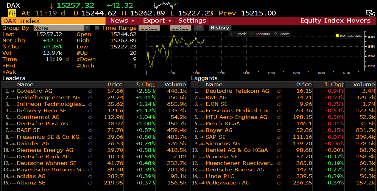 DAX résztvevők 11:19-kor. Forrás: Bloomberg