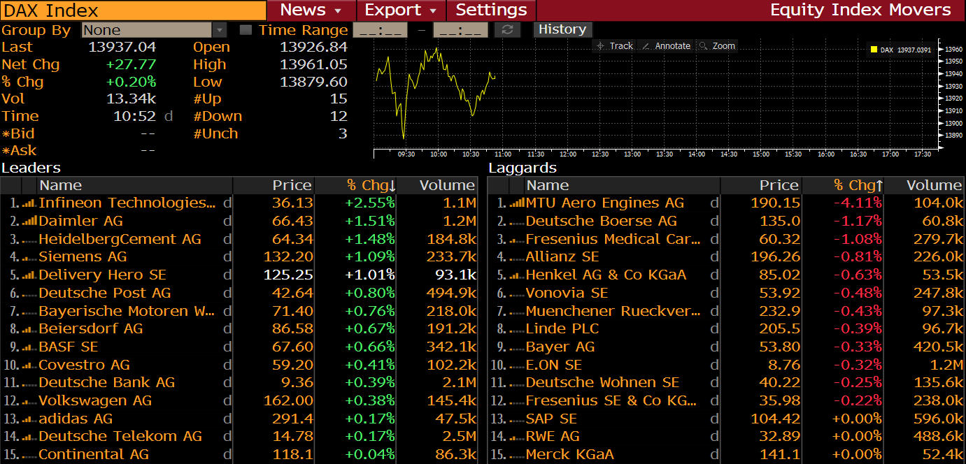 DAX résztvevők 10:52-kor. Forrás: Bloomberg