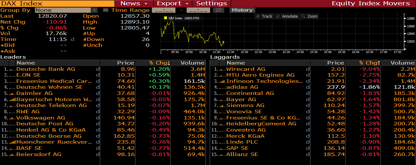 DAX tagok 10:15 BST. Forrás: Bloomberg