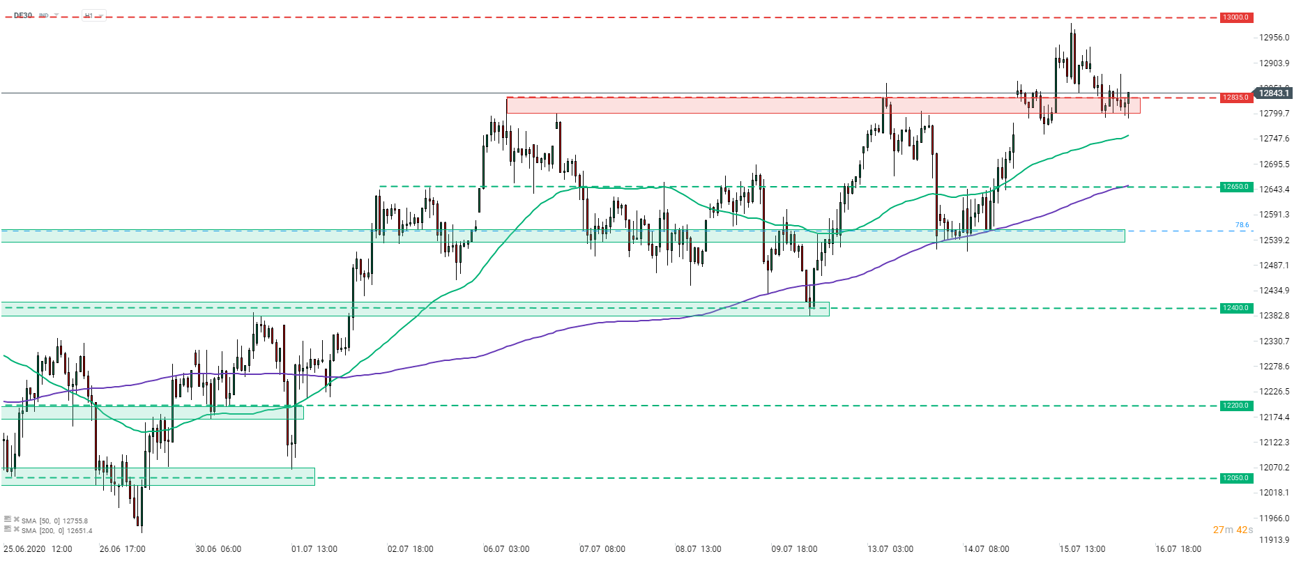 - A DAX (DE30) visszaesett a 13.000-es szint sikertelen támadása után