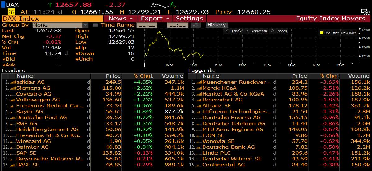 DAX tagok 10:41 BST. Forrás: Bloomberg