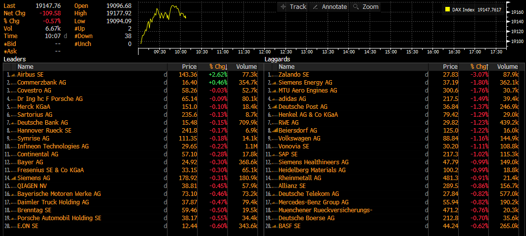 - Az Airbus (AIR.DE) és a flatexDEGIRO részvényei emelkednek; a Zalando, a Rheinmetall, a Siemens és a Knorr-Bremse részvényei nyomás alatt.