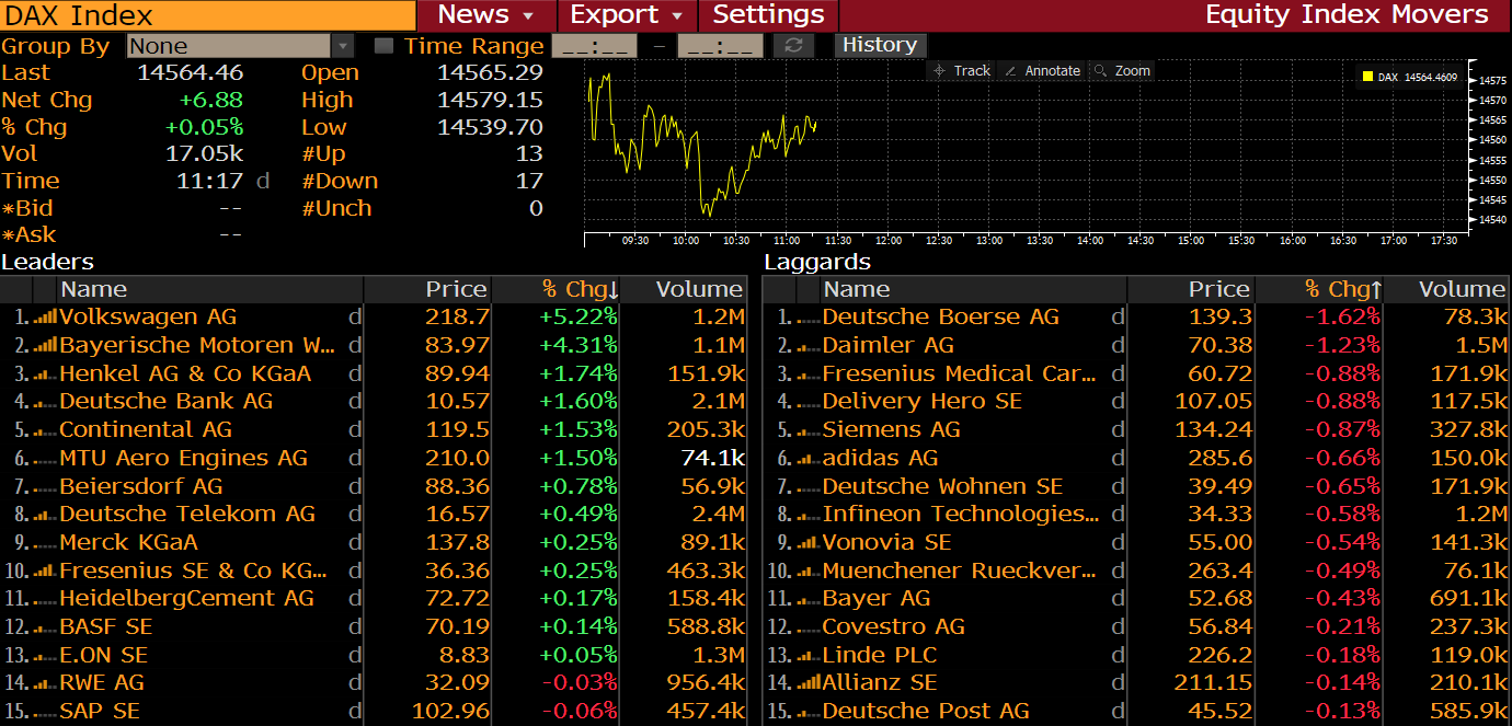 DAX résztvevők 11:17-kor. Forrás: Bloomberg