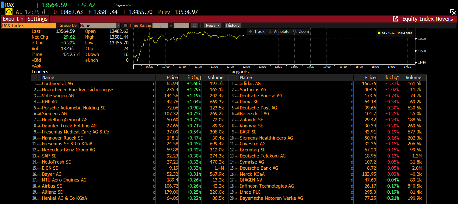 A DE30 indexben szereplő cégek legnagyobb százalékos változása. Forrás: Bloomberg