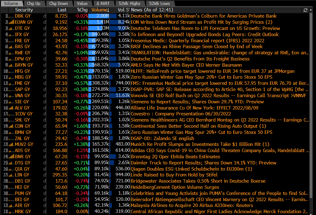 A DE30 index legaktívabb részvényei. Forrás: Bloomberg