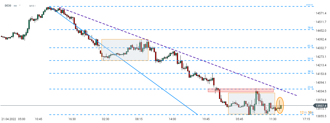 Market move was quick with DE30 jumping around 0.5%, or 70 points in a matter of a few minutes. However, this did not last long and the move has been almost fully erased by now.