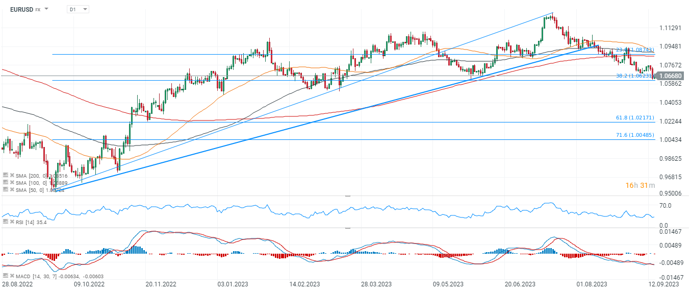 Az EURUSD 1,066-nál kereskedik - ugyanakkor a 2022 őszi felfelé irányuló hullám 38,2 Fibonacci retracementjénél tartja a támaszt, ami reményt ad a bikáknak, hogy a felfelé irányuló trend végül folytatódni fog. Tekintettel az e heti Fed ülésre, a pár volatilitása még mindig nagyon magas lehet. Forrás: xStation5
