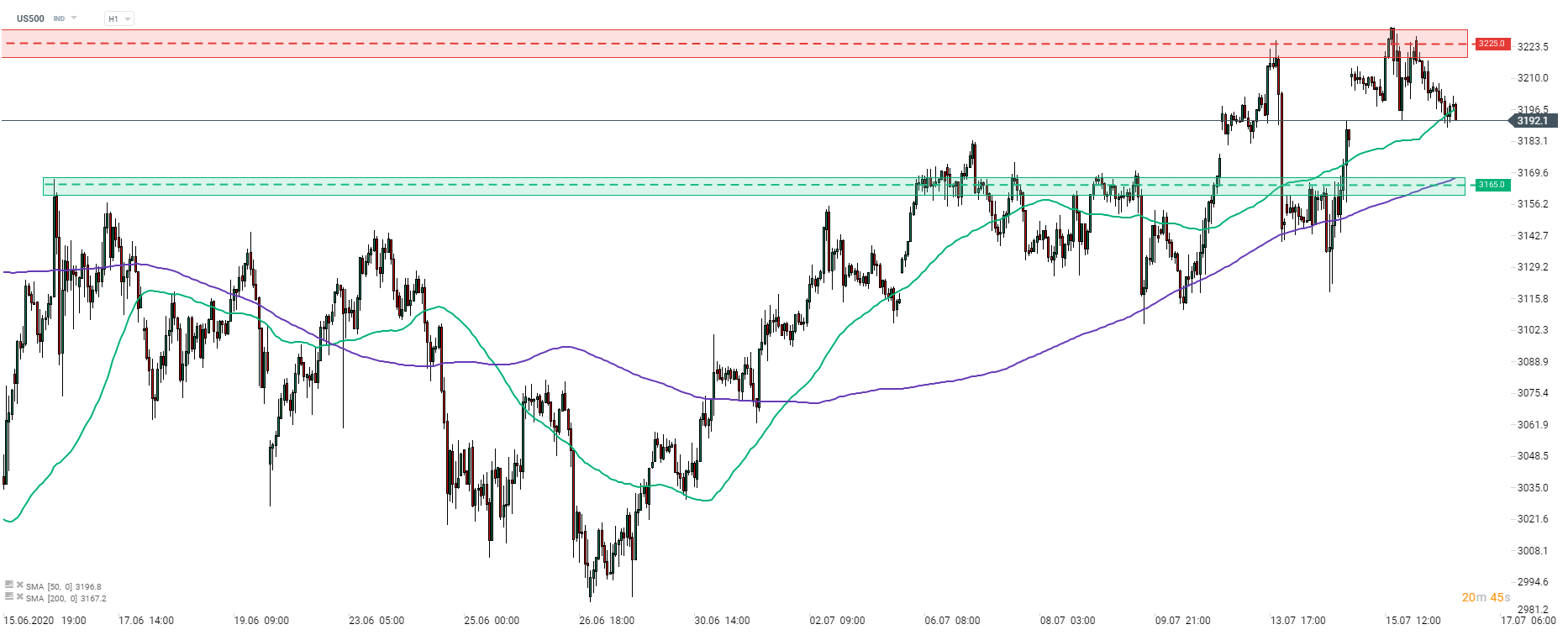 US500 revisited post-pandemic highs in the 3,225 pts area yesterday. However, the index started to pullback on the back of lacklustre monthly data from China. The 50-hour moving average (green line) in the 3,200 pts area is being tested at press time and break below it could herald a test of 200-hour moving average (purple line, 3,165 pts). Source: xStation5