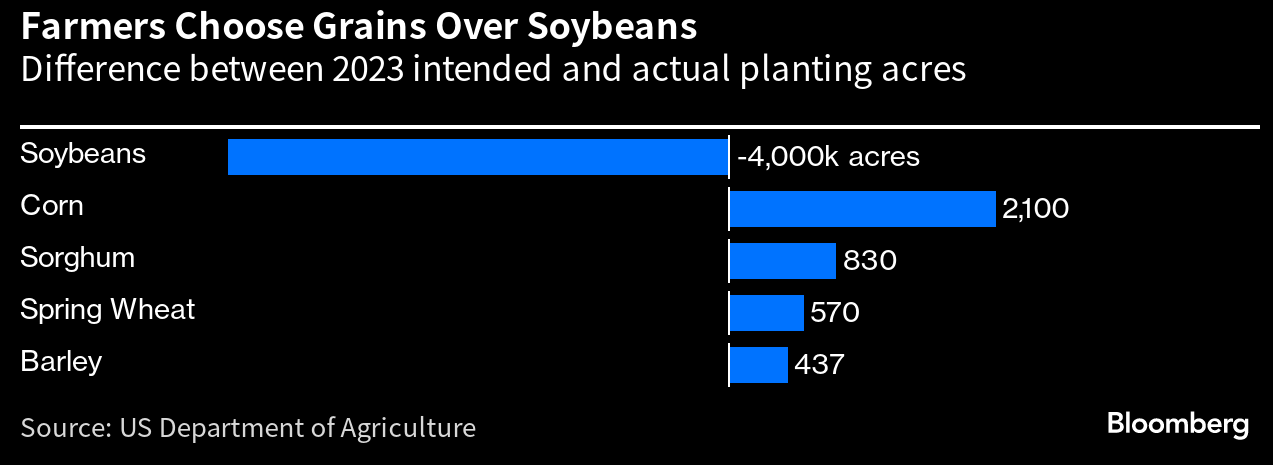 Changes between planned and actual plantings in the United States. Source: Bloomberg