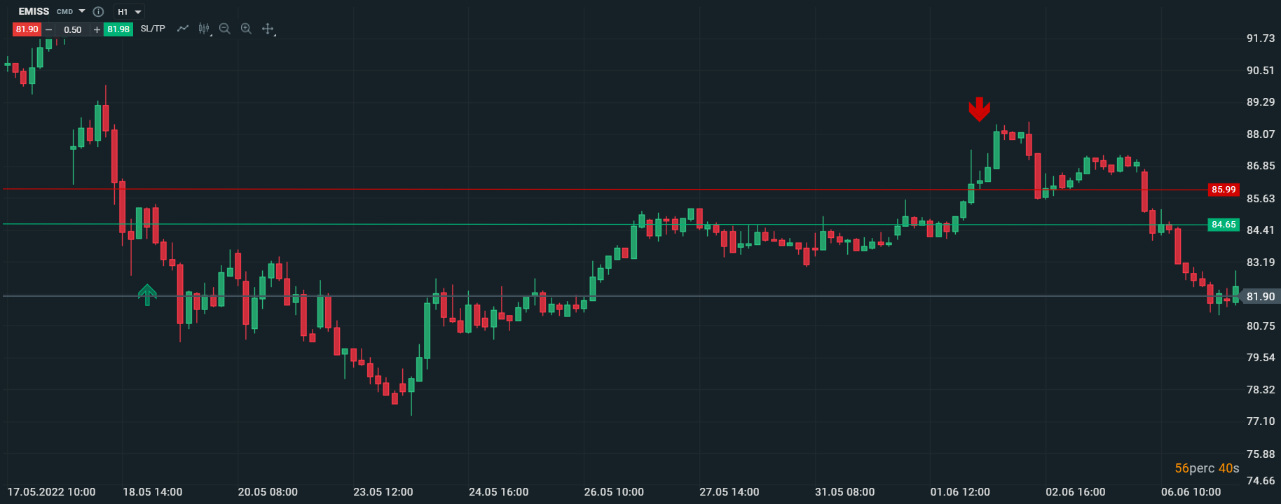 Magyarország legjobb kötése a múlt héten az XTB Limited berkein belül 2 244 534,33 forintot (5 760,83 EUR) hozott a tulajdonosának éles számlán, befektetését 2 hét után zárta EMISS instrumentumon. A kötés mennyiség 0,98 lot volt. Vásárlási (buy) pozícióját befektetőnk 2022. május 18-án, szerdán a 84,65 szinten vette fel, majd profittal zárta a 85,99 árszinten 2022. június 2.-án. Az EMISS 1,34 elmozdulását csípte el kereskedőnk.
