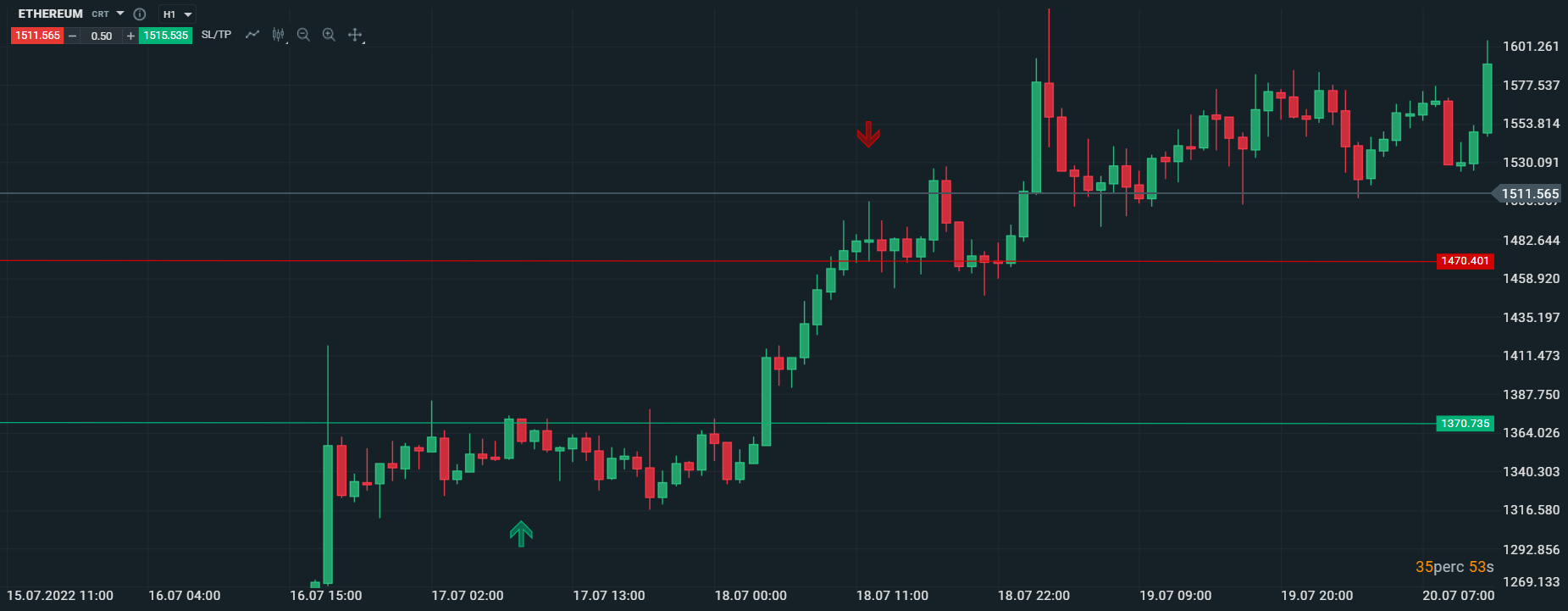 Magyarország legjobb kötése a múlt héten az XTB Limited berkein belül 1 365 294,55 forintot (2 581,53 EUR) hozott a tulajdonosának éles számlán, befektetését 1 nap után zárta Ethereum instrumentumon. A kötés mennyiség 3,5 lot volt. Vásárlási (buy) pozícióját befektetőnk 2022. július 17-én, hétfőn a 1370,735 szinten vette fel, majd profittal zárta július 18-án a 1470,401 árszinten. Az Ethereum 99,666 elmozdulását csípte el kereskedőnk.