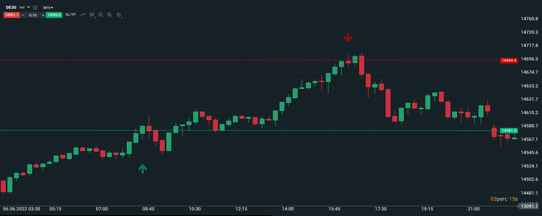 Magyarország legjobb kötése június második hetében az XTB Limited berkein belül 1 159 132,45 forintot (3 053,47 USD) hozott a tulajdonosának éles számlán, befektetését 6 óra után zárta DE30 instrumentumon. A kötés mennyiség 1,06 lot volt. Vásárlási (buy) pozícióját befektetőnk 2022. június 6-án, hétfőn a 14581,5 szinten vette fel, majd profittal zárta aznap a 14694,4 árszinten. A DE30 112,9 elmozdulását csípte el kereskedőnk.
