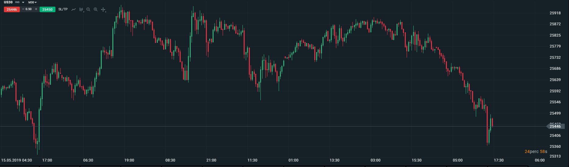 Az amerikai májusi PMI-indexek adata hatalmas csalódásnak bizonyult. Mind a szolgáltatások, mind a gyártási mérőmutatók jelentősen csökkentek nagyobb nyomást helyezve a részvénypiacra. A Dow Jones (US30) 1,5% -kal alacsonyabb áron kereskedik 40 percel a csütörtöki szenszon.