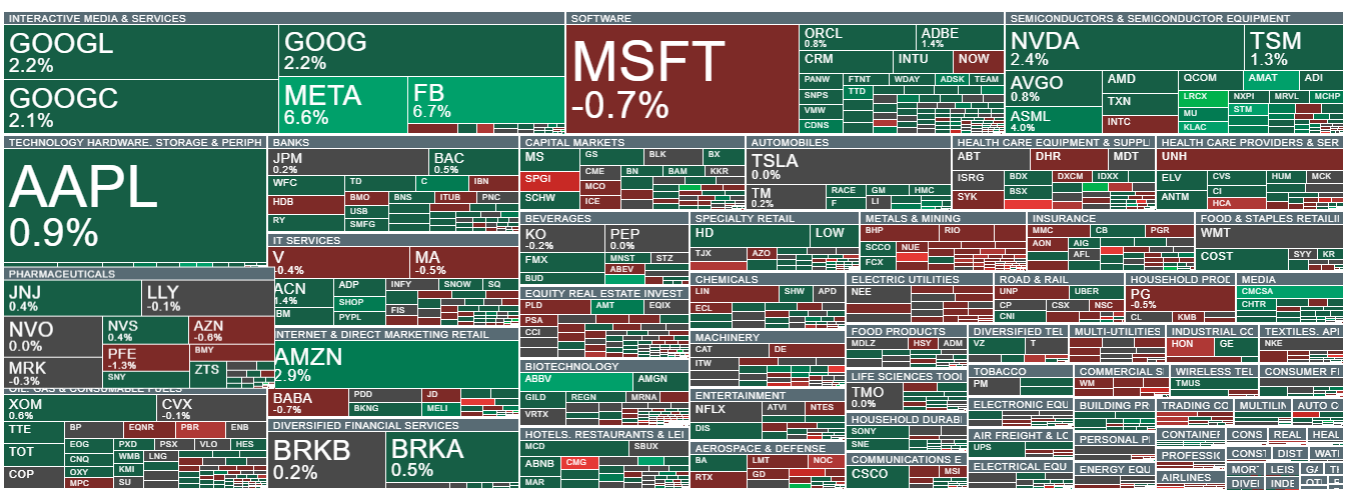 Az S&P500 index legaktívabb részvényei közül a BigTech folyamatosan vezet, a chipgyártók részvényei raliznak. Forrás: xStation5