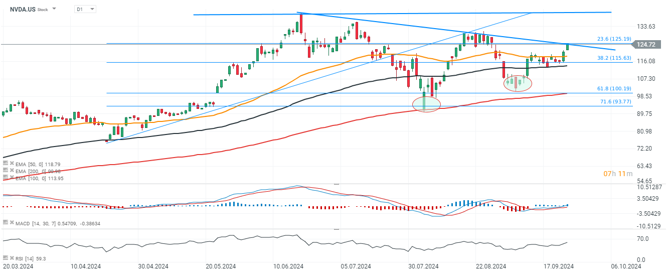 Az Nvidia és az Intel (INTC.US) vezeti a mai napon a félvezető szektor nyereségét. Forrás: xStation5