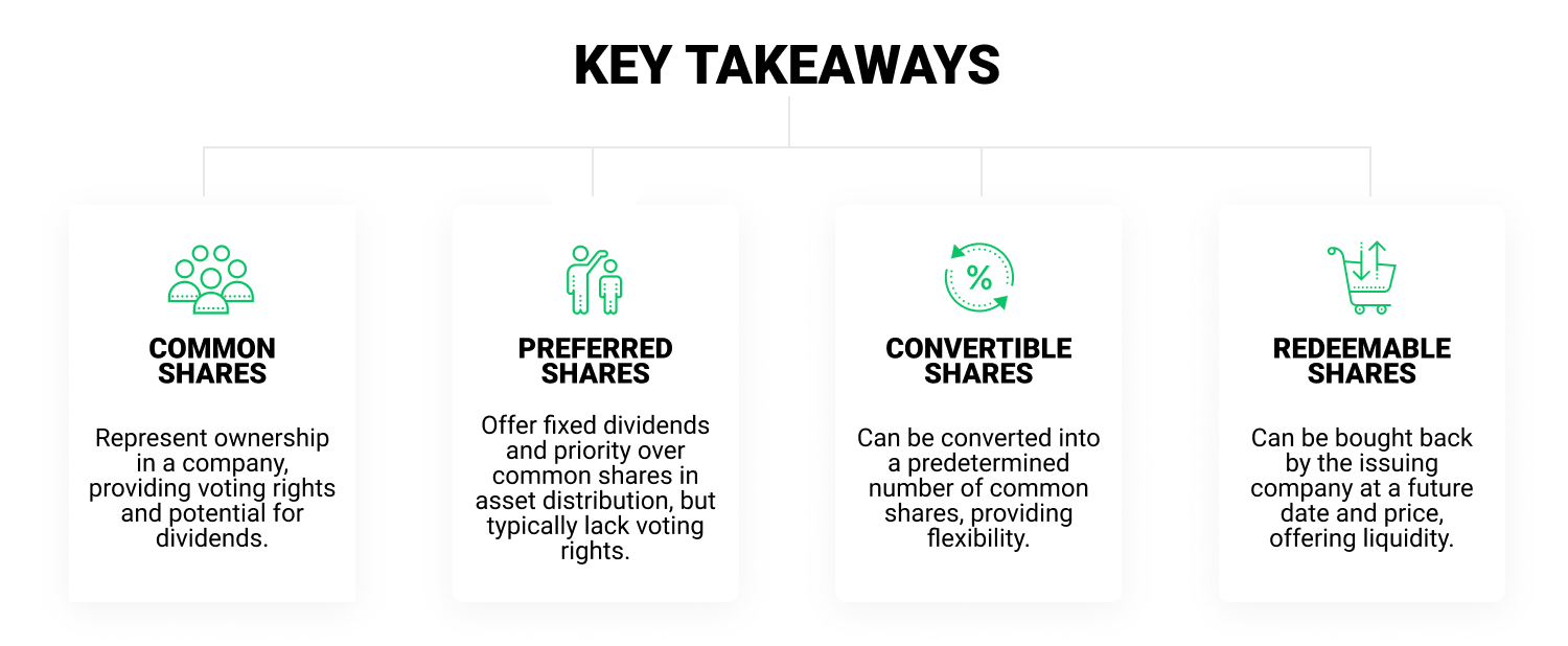 Saham yang dapat ditebus (redeemable shares): Dapat dibeli kembali oleh perusahaan pada waktu dan harga tertentu, sehingga memberi opsi likuiditas.