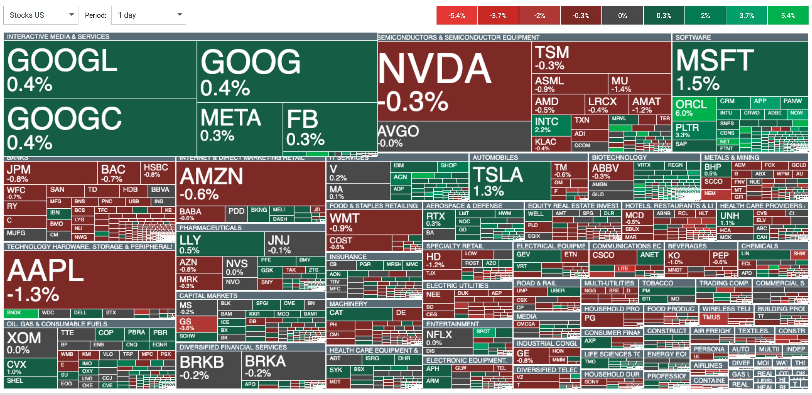 Sentimen sektoral hari ini cenderung campuran. Sementara saham media digital dan perangkat lunak memberikan dukungan utama, sektor semikonduktor masih berada dalam tekanan mode “risk-off”. Sektor perbankan menjadi yang paling tertinggal setelah kinerja mengecewakan dari bisnis trading FICC milik Goldman Sachs.