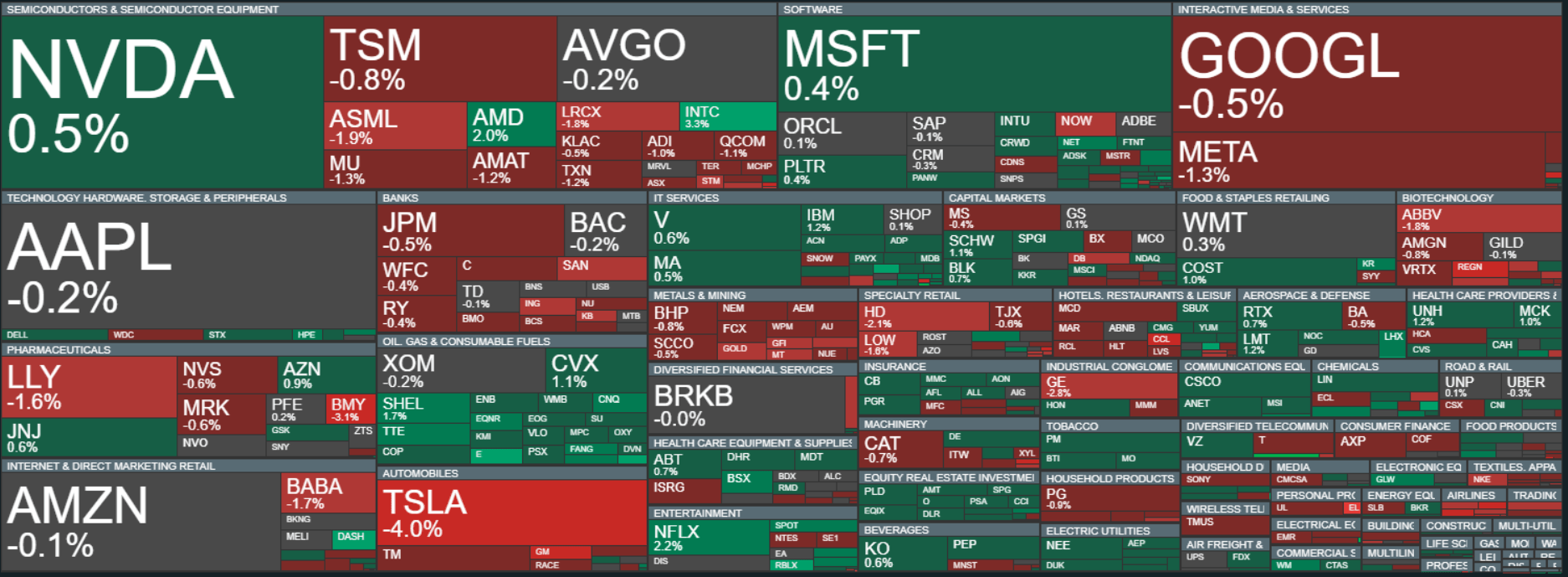 Exxon (XOM.US): Produsen dan penyuling minyak mengalami kenaikan seiring ekspektasi harga minyak yang lebih tinggi. Saham ini naik 2%.