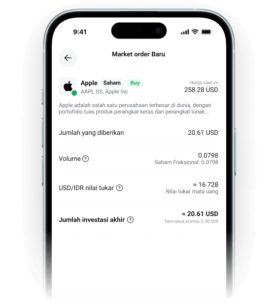 Transaksikan saham fraksional dan alokasikan modal sesuai kebutuhan Anda — mulai dari nominal kecil hingga sebesar yang Anda inginkan.