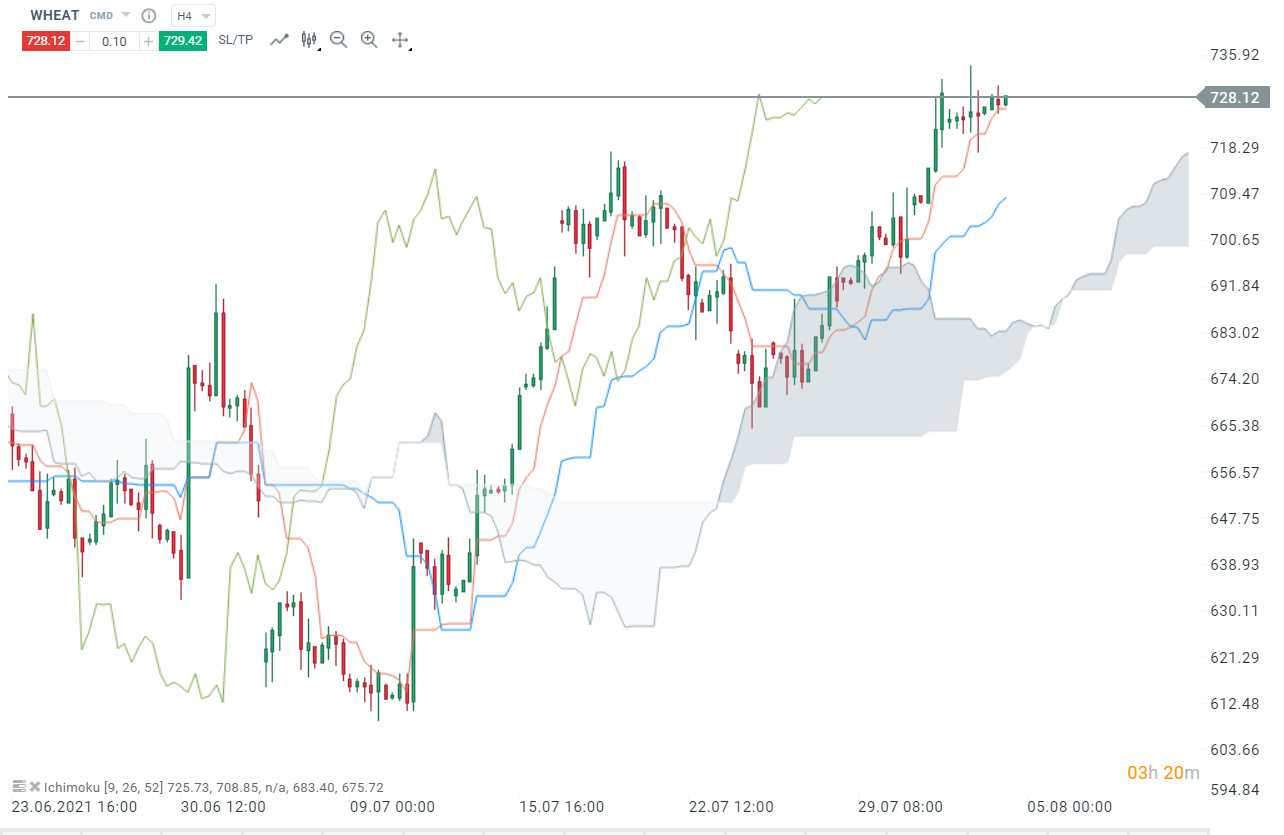 Trigo (WHEAT), gráfico de 4horas, Fonte: xStation5