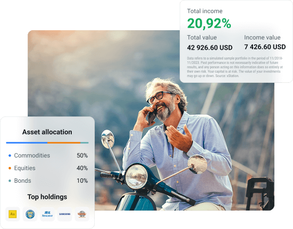 You can start investing from as little as 15 USD or account currency equivalent with a range of deposit methods, including free and instant ones. Set up recurring payments that will regularly fund your Plan