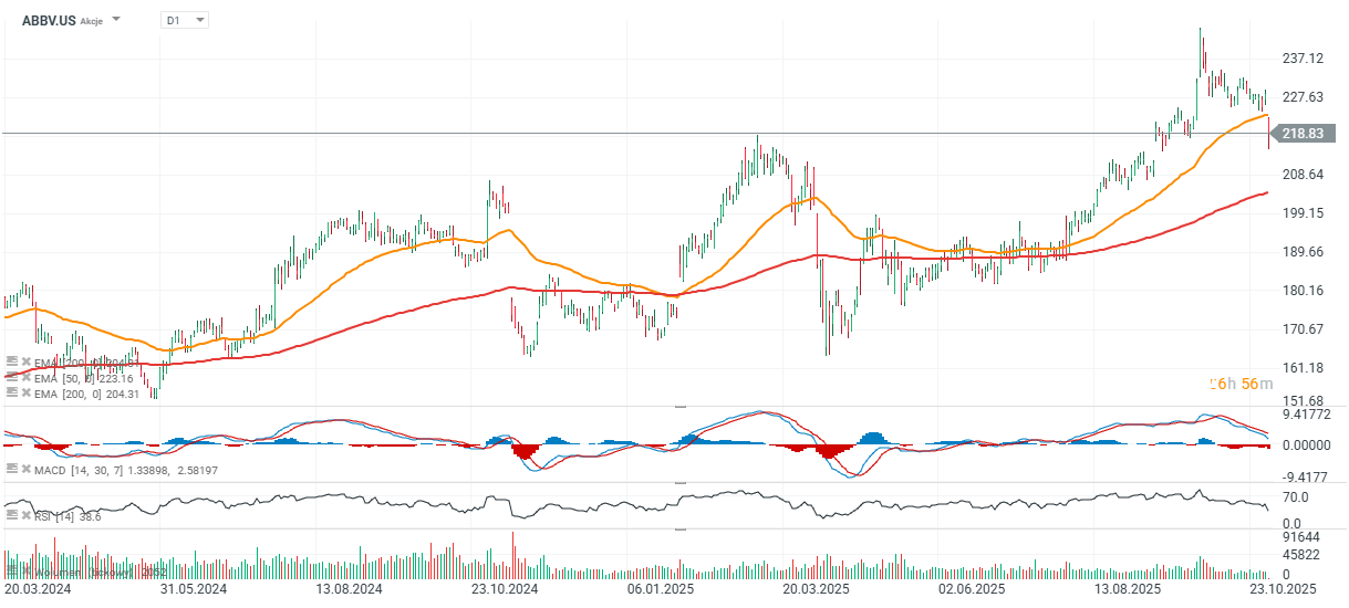 AbbVie beats earnings forecasts but faces pressure from slowing oncology and aesthetics sales. The stock is down almost 4% today, falling to the lowest level since September 26.