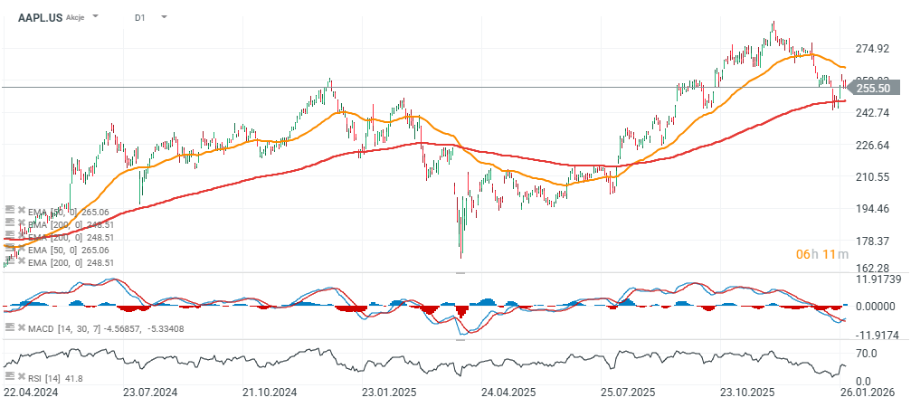 Apple (AAPL.US) rounds out the Big Tech earnings week with elevated stakes: markets are highly sensitive to CAPEX and AI narratives after Microsoft’s sell-off. But Apple’s approach is different — less build-out of proprietary AI infrastructure, more partnerships, and monetization through its ecosystem. Over the past 12 months, the stock has lagged much of Big Tech, gaining just under 7%.