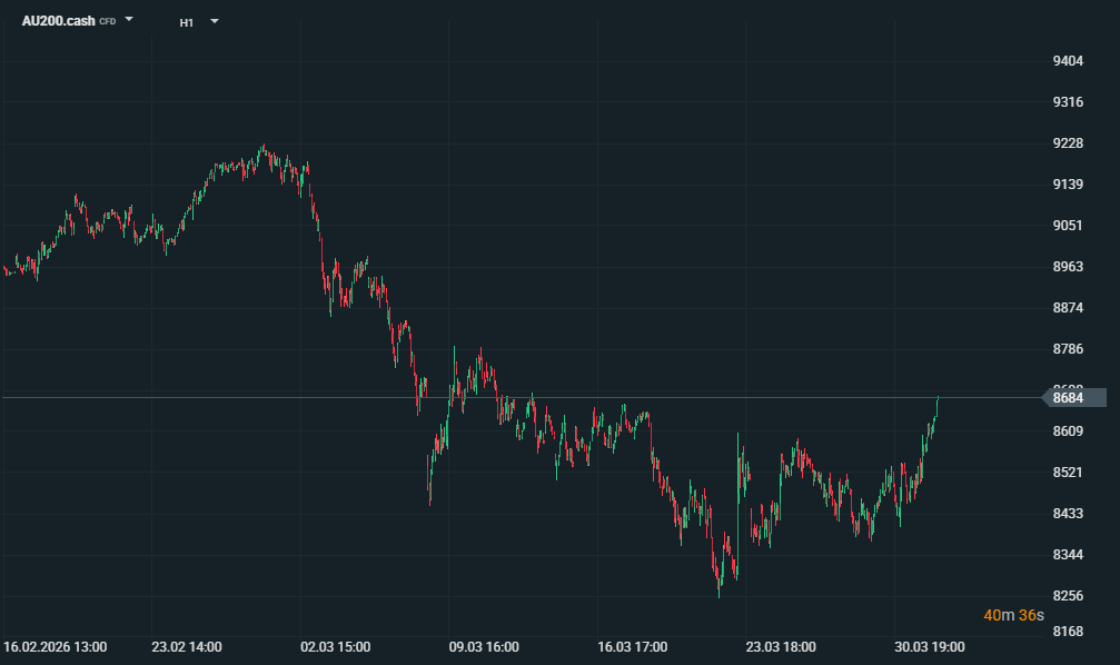 Despite the weak macro signal, the equity market reacted in the opposite direction. The AU200 (S&P/ASX 200) rose by around +2.2% to 8,680 points, supported by a global risk-on move and hopes for de-escalation of the conflict in the Middle East. The rally was mainly driven by the mining sector and cyclical stocks, reflecting Australia’s strong exposure to commodities and global demand. However, this rebound followed a very weak March, when the index fell nearly 10%. Australian equities are particularly sensitive to geopolitical shocks, oil price volatility, and expectations for global growth, making them a useful barometer of the Middle East conflict.