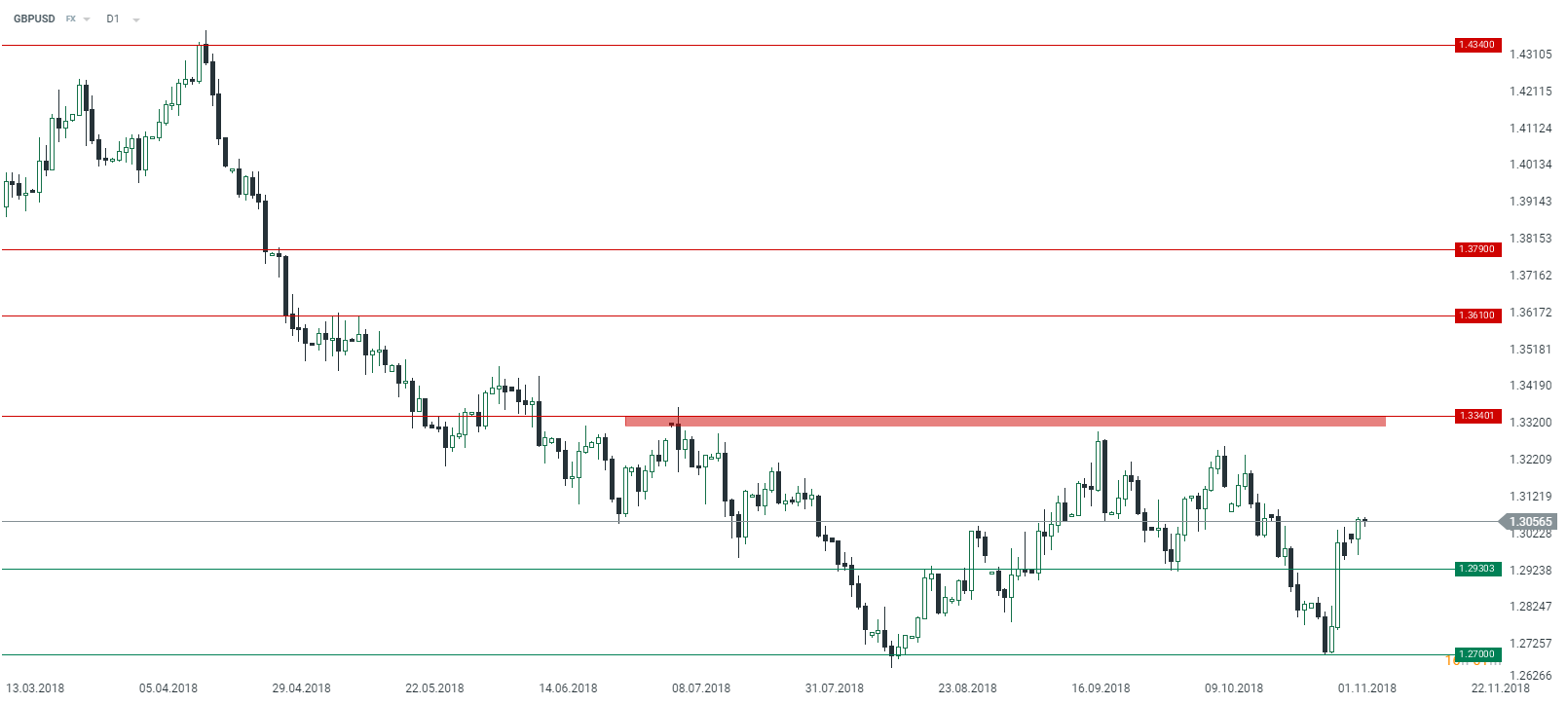 The AUDUSD tried to move through the upper limit of the bearish channel and even as the attempt did not end with a big breakout bulls have not backed down since then. As a result the pair is currently trading above this mark and assuming the continued upward move (the US dollar could be under pressure due to elections results) one may expect the pair to rise toward 0.75. Source: xStation5
