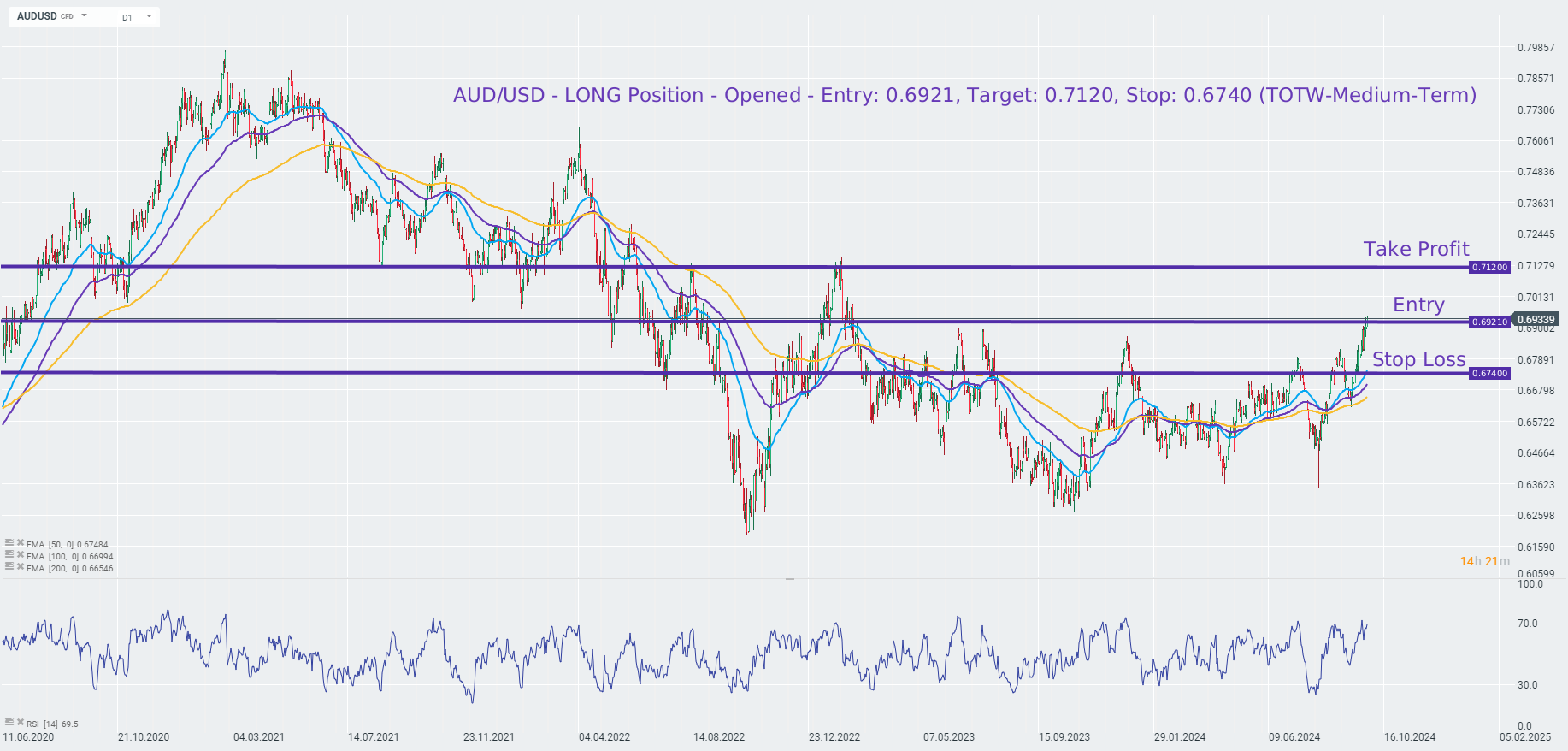 MUFG recommends taking a long position on AUDUSD at the market price with a take profit order at 0.7120 and a stop loss order at 0.6740. Source: xStation5