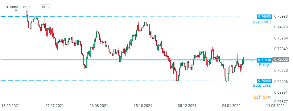 CITI recommends taking a long position on AUDUSD at 0.7193 with a target of 0.7600 and a stop loss order placed at 0.7000. Source: xStation5