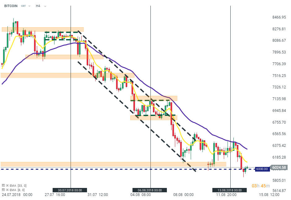 Bitcoin (BITCOIN on xStation5) remains in the vicinity of the $6000 handle after dipping below for a while