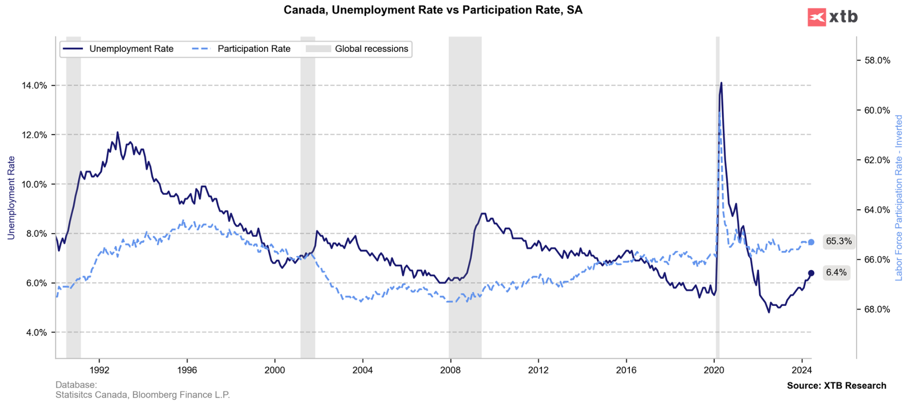 Canadian dollar weakens after data release. The labour market is weakening, as in the US, and the pace seems to be accelerating month on month. The data are not the best, raising investor concerns about the economy.
