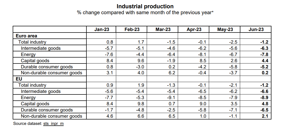 Eurozone June industrial production +0.5% vs -0.1% m/m expected