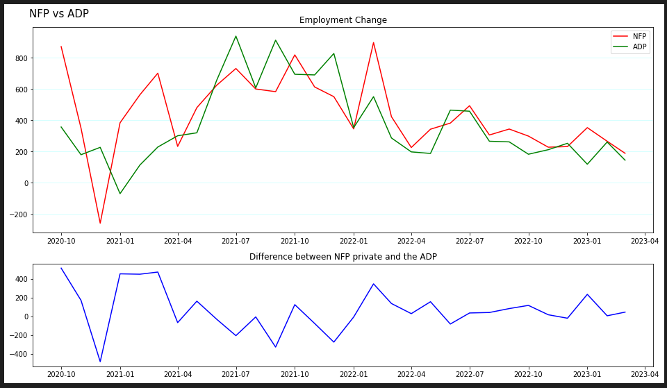 Both ADP and NFP private data showed lower jobs growth in March than in February. Source: Bloomberg, XTB