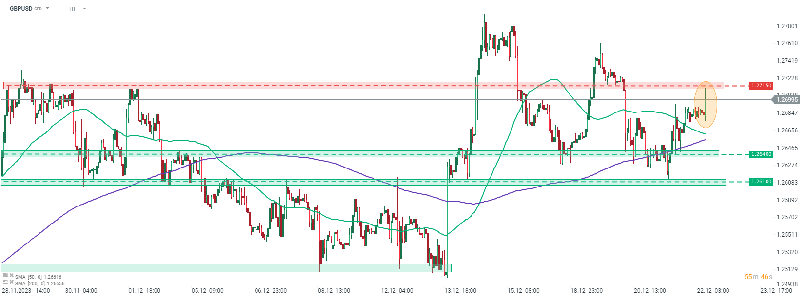 GBPUSD gained following release of mixed UK data and tested 1.2715 resistance zone. Source: xStation5