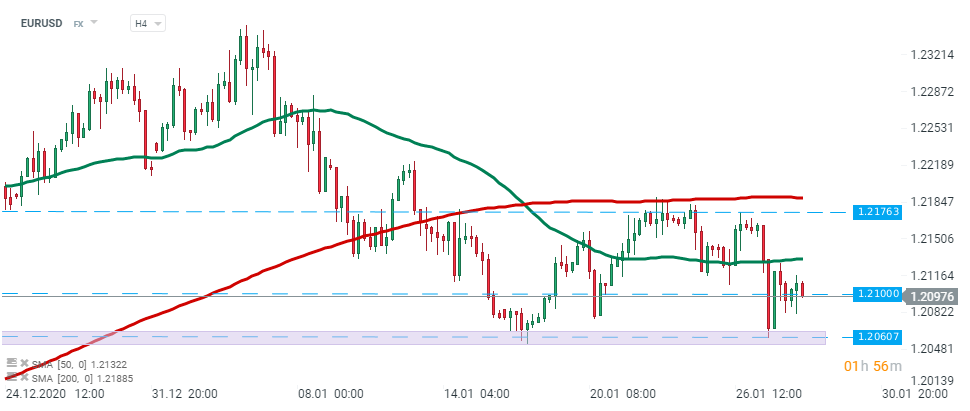 EURUSD saw a relatively small reaction to today’s data releases. The most popular currency pair continued to trade around 1.2100 level. Source: xStation5